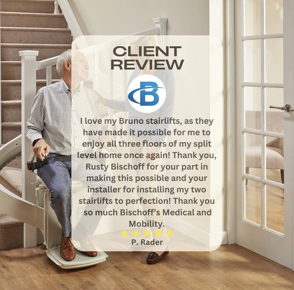 “My experience with Bischoff’s was very positive due to the knowledgeable staff, and their helpfulness.  I appreciate the expertise of Rusty Bischoff, who installed the stairlift in my house and also the other employees, too.  The efficiency and kindness was helpful during a stressful time for me.”